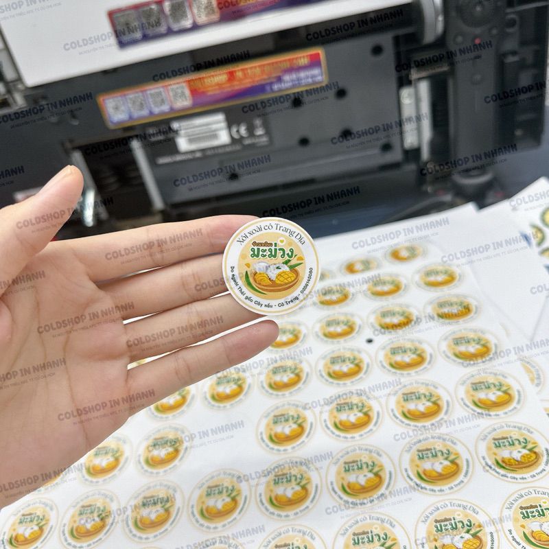 Mẫu in: Ưu tiên khách có sẵn file in, chỉ cần khách gửi file in qua 0343286591 (In tem nhanh) sẽ được hướng dẫn. Ngoài ra, khách chưa có logo in có thể trao đổi trực tiếp với Shop để được hỗ trợ.