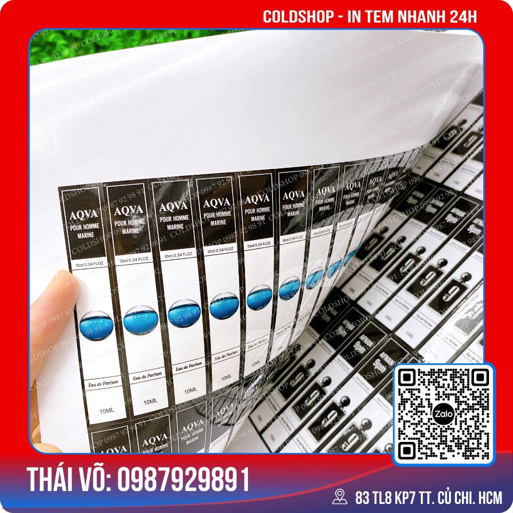 - Chất liệu: tem nhựa chống nước.