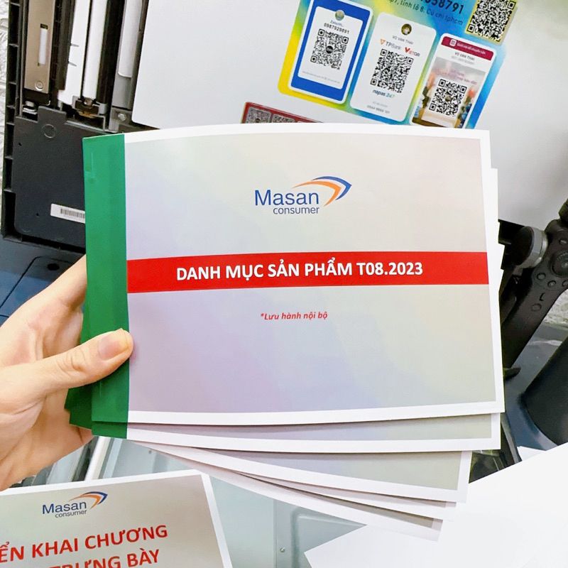 Chất liệu: Giấy bìa coucher bóng, ruột giấy Double A 80gsm