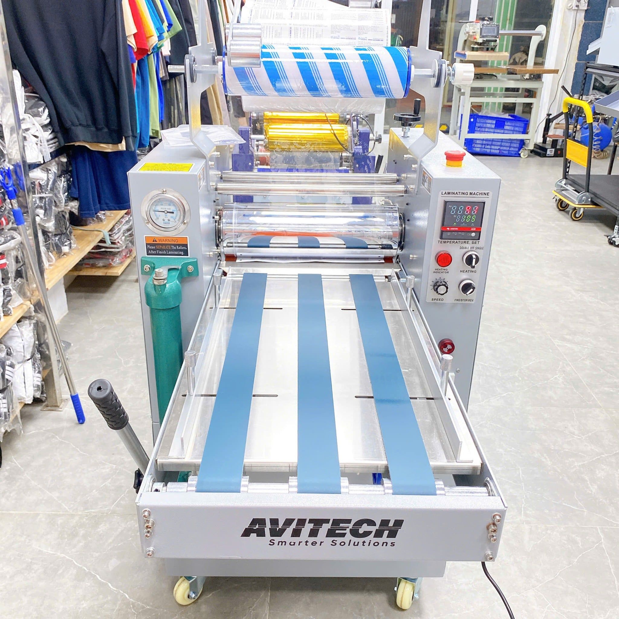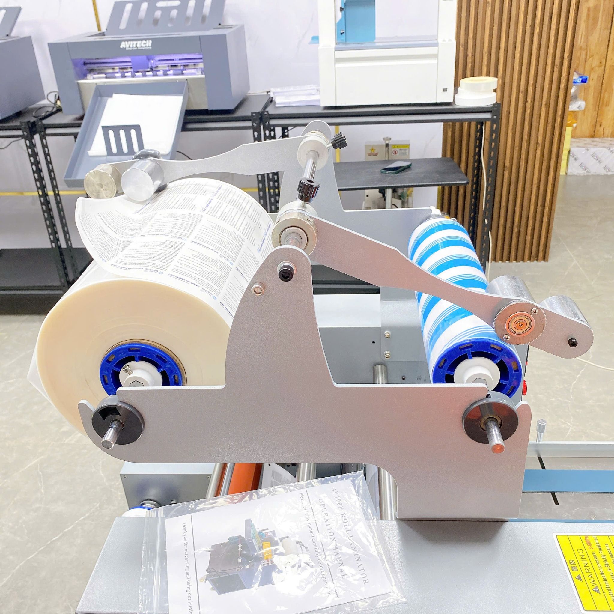 Cùng với phương pháp ép thủy lực ổn định, tuổi thọ máy cao; áp lực cán rất khỏe, lô cán của máy bằng inox cao cấp, đường kính lô to tiếp xúc với sản phẩm hoàn hảo, thành phẩm sắc nét nhất là với các màu bệt xanh, đen, đỏ,..
